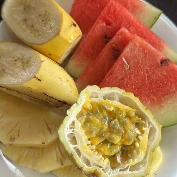 Frische tropische Früchte: Genießen Sie sonnengereifte Mangos, Papayas und Ananas aus der Region – der perfekte Start in den Tag.